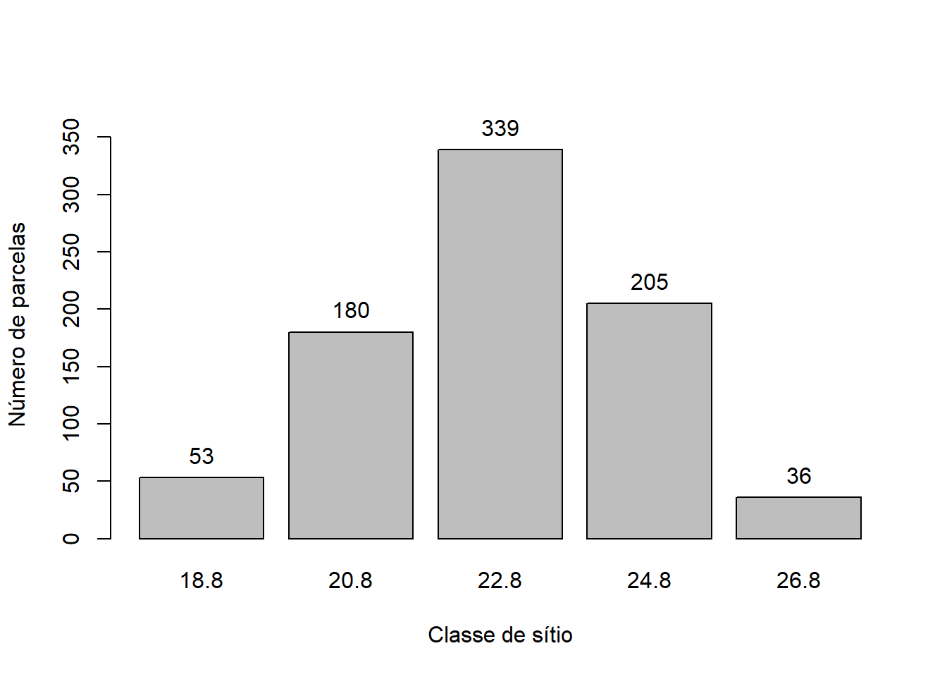xlab = 'Classe de sítio', ylab = 'Número de parcelas',